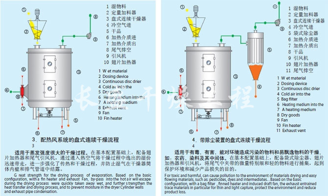 ◎加热介质:蒸汽、热水、导热油、干燥盘温度100℃时使用热水加热,100℃~150℃时用≤0.4MPa饱和水蒸汽或者过热蒸汽加热,150℃~320℃时用导热油加热,>320℃时可采用电、导热油、熔盐等方式加热。