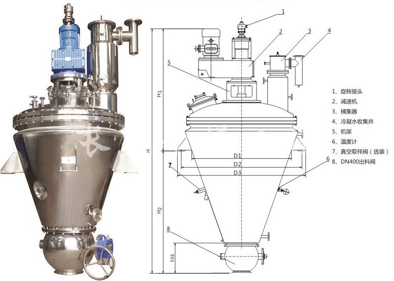 DLZ单锥螺带真空干燥机主要结构